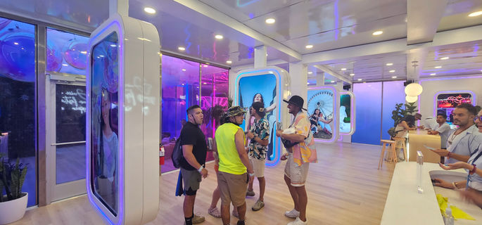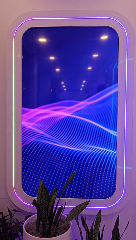 12x 75" LCDs with custom LED Frames mapped via Resolume network array
